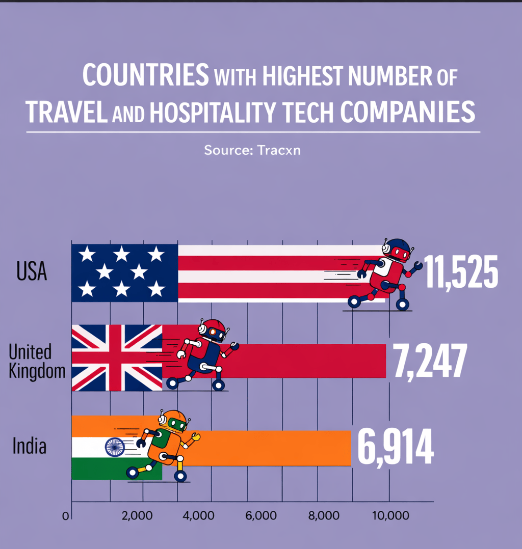 Takeaway: The U.S. remains the clear leader by a wide margin, which suggests it still has the deepest innovation density and the strongest environment for scaling travel-tech businesses. At the same time, the U.K. and India stand out as serious hubs in their own right, showing that travel-tech innovation is not limited to one geography. For operators, this means many of the next product ideas, partnerships, and competitive threats are likely to emerge first from these concentrated ecosystems rather than from the market at large.
